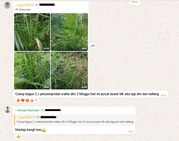 Kelapa sawit saya kembali subur, batangnya kokoh, dan berbuah lebat seperti masa kejayaannya dulu. Kerugian besar telah berubah menjadi kebangkitan baru. Panen makin berlipat tidak seperti sebelumnya.